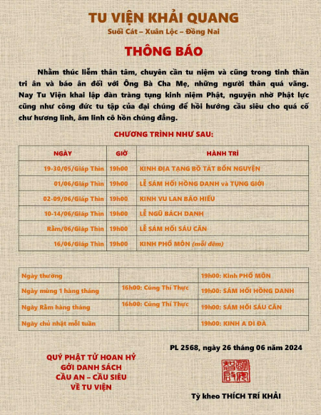 Chương trình tụng kinh niệm Phật tháng 6/Giáp Thìn